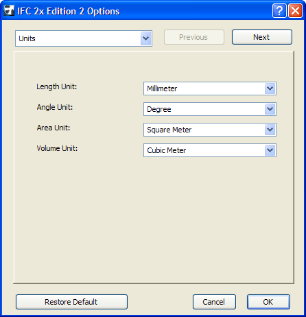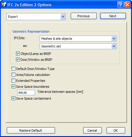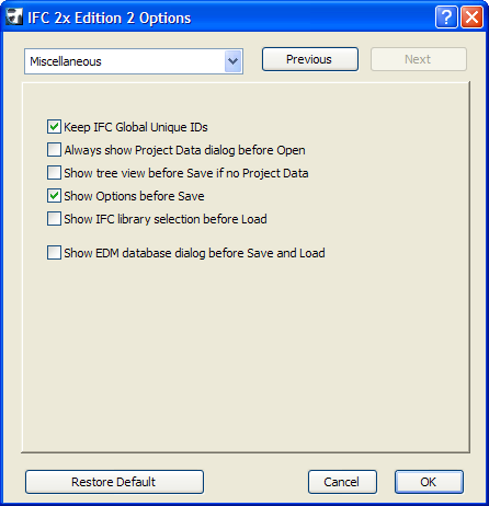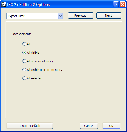 After pressing the Save button, the IFC Options dialog appears, letting you modify or recheck your saving options.