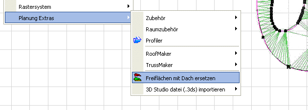 Unregelmäßige "Freiformen" können mit dem Freiflächen-Werkzeug modelliert werden. Diese Elemente lassen sich mit diesem Add-On in Dächer umwandeln.