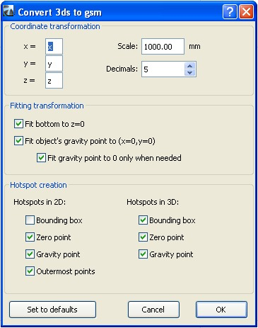 This ArchiCAD Add-On can convert 3D Studio (.3ds) files to ArchiCAD GDL objects. The conversion process can be customized by the user.