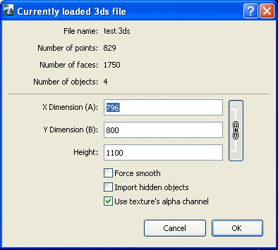 The conversion process is customizable with the Options.. command from the File/File Special/Import 3D Studio Files menu.