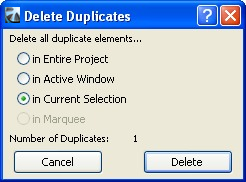 The Add-On will add two new command to ArchiCAD: Select Duplicates and Delete Duplicates